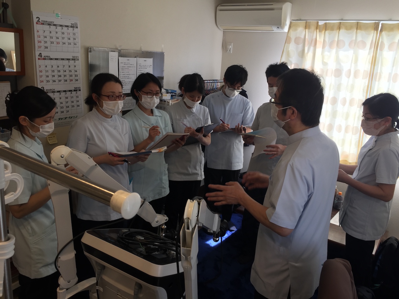 昨日は、両院の主なスタッフが集まって、カルテ書き方と照射練習の研修会を行いました。