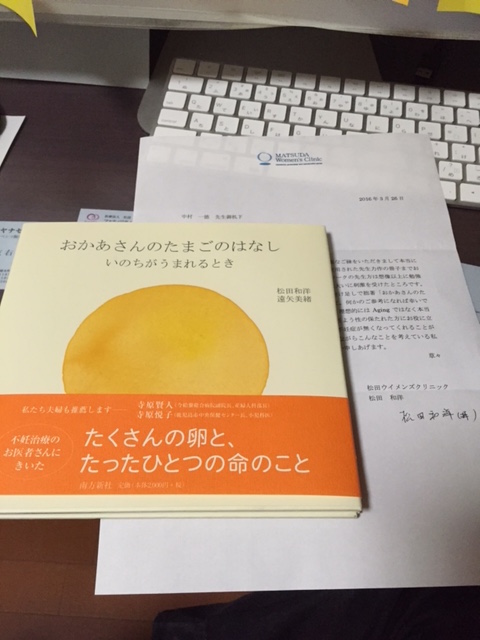 この本、不妊治療の本としては、すごく暖かいんです。松田先生のお人柄がにじみ出ています。できれば生まれてきたお子さんが思春期になった時にも読ませてあげたい一冊です。生殖というと難しい言葉ですが、そういう視点よりも、もっと根本的に「命の誕生」について、感覚的に書かれています。